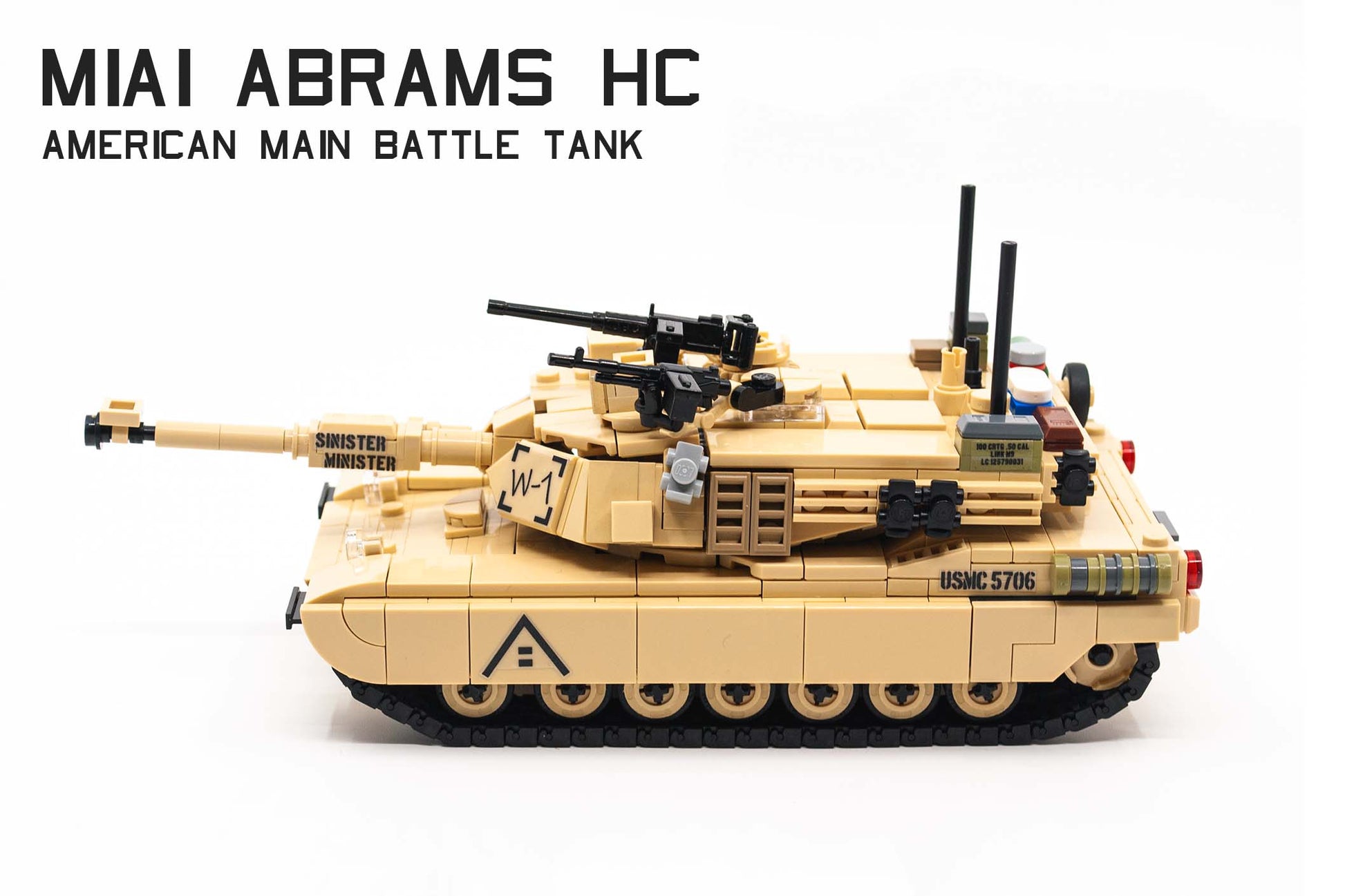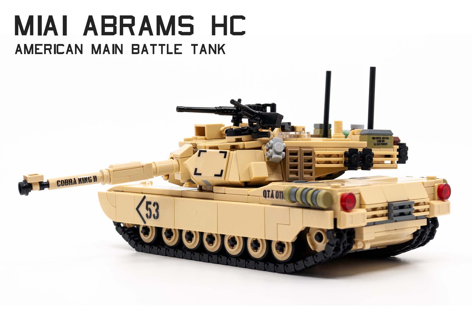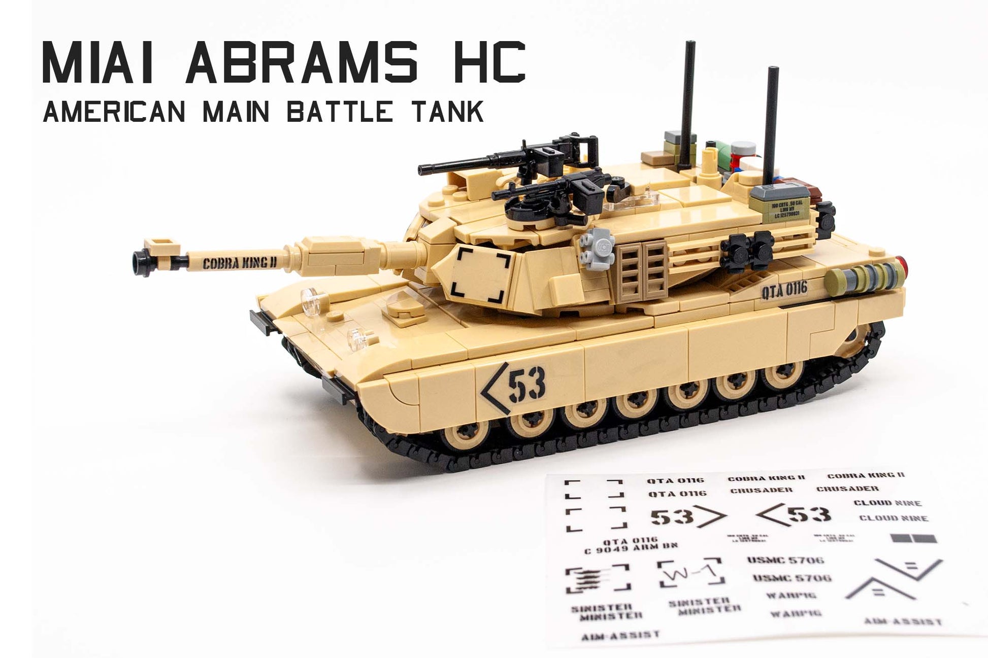 This building kit depicts the legendary M1A1 Abrams main battle tank in highly accurate and sturdy 1:45 scale detail! This is the M1A1 HC (Heavy Common), a version of the M1A1 with DU armor upgrades standardized for use by the US Army and USMC. This model is based on Abrams tanks used during Operation Iraqi Freedom and includes an exclusive sticker sheet with 28 period-accurate markings for tanks of both branches.