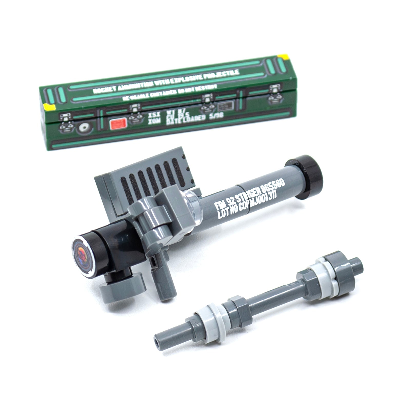 Secure the skies! This mini-build from Brick Battlefield is based on the FIM-92 Stinger system, featuring extensive UV printing. The Stinger is an American man-portable air defense system, capable of engaging fixed wing aircrafts, helicopters, and drones with its IR/UV seeker. It is used extensively by the U.S. military and many international users.