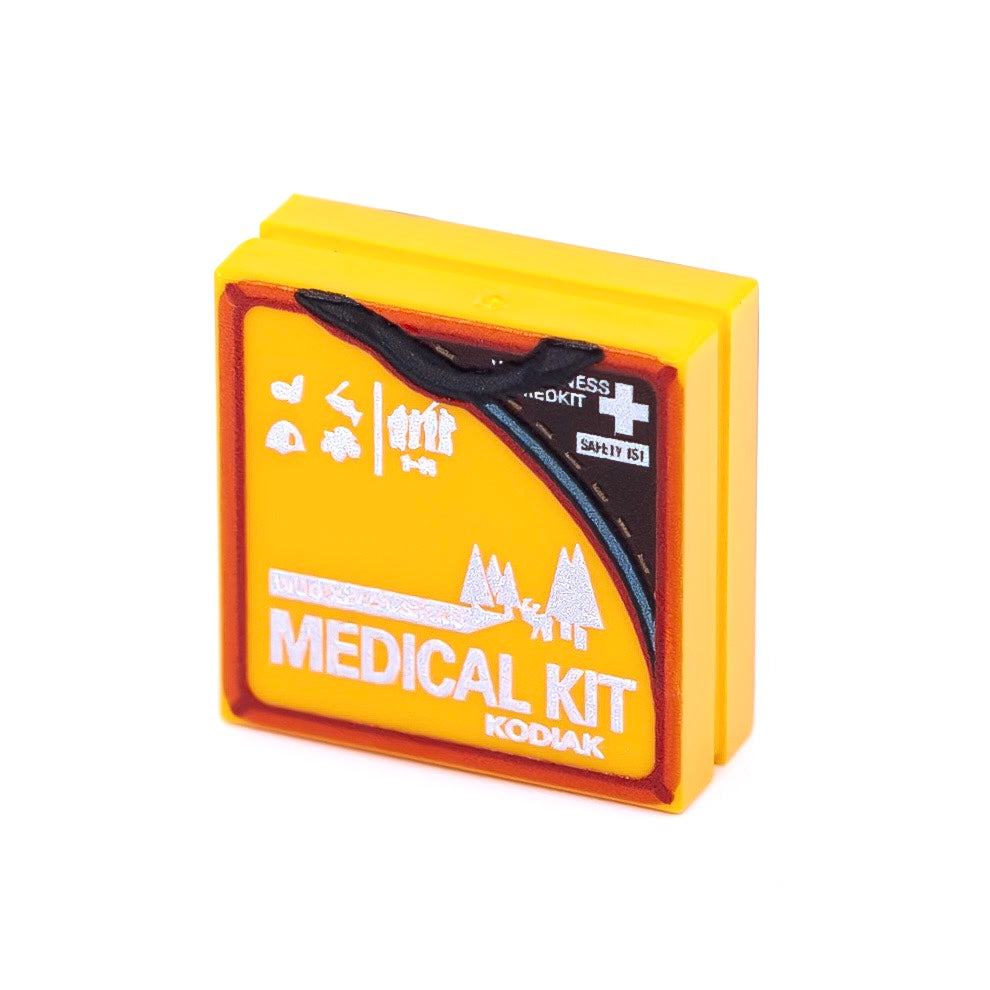 This toy accessory depicts a large outdoorsman's medkit, useful for handling any grizzly situation.